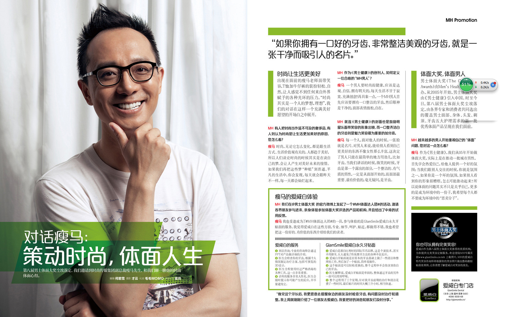 擁有一口潔白的牙齒,展現燦爛的笑容,往往給整體形象增光添彩。創立於比利時的 GlamSmile愛威白,已經風靡國際20多年,在全球超過100家門店。GlamSmile愛威白以嶄新的3D牙齒瓷貼面技術享譽全球40多個城市,使用過的名人、藝人更是數之不盡。曾經接受過知名媒體訪問的就有上百人。這些名人陪你一起見證GlamSmile愛威白的精湛技術。